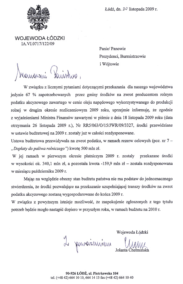 1. Spółdzielnia Kółek Rolniczych w Lipcach Reymontowskich (z prośbą o wywieszenie na 21 dni i zwrot do Urzędu Gminy po
